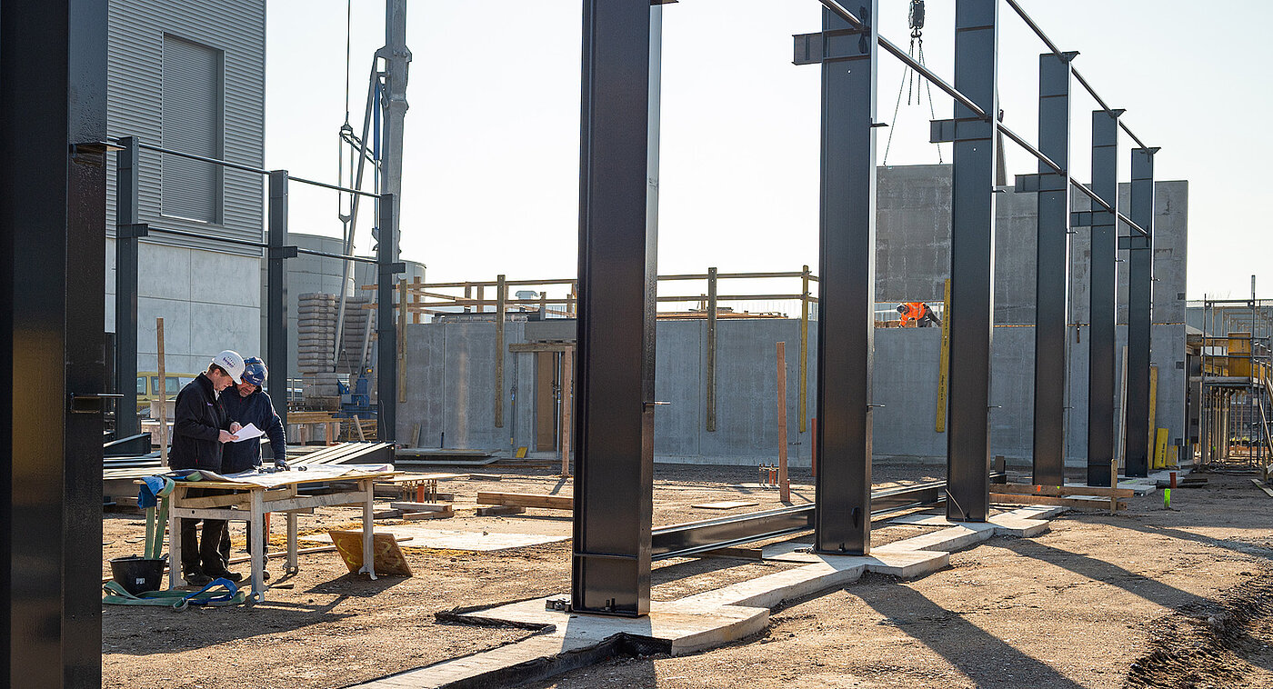 Während der Bauphase stellen unsere erfahrenen Bauleiterinnen und Bauleiter sicher, dass Ihr Projekt qualitativ und pünktlich fertiggestellt wird – und dass Sie während des gesamten Prozesses einen zentralen Ansprechpartner haben, an den Sie sich jederzeit wenden können. Auch die Koordination von Lieferanten wie Betriebsausstattern und Partnern für die Ausbauarbeiten läuft über uns. Zum Schutz aller am Bau beteiligten Personen und Materialien ist es für uns selbstverständlich, höchsten Wert auf Ordnung, Sauberkeit und kompromisslose Sicherheit auf den Baustellen zu legen.